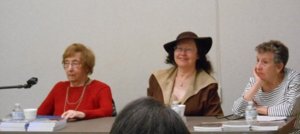 I was fortunate to be on two panels last week to talk about writing. The first was sponsored by the Worcester Women’s History Project, a wonderful group that provides great programs to teach us about the history of women in and around Worcester in all facets of life. Check out their web site for some of the intriguing lectures, films, gatherings, etc. that they hold. My panel was called Women in Print, and I was on the bill with Thea Aschkenase, and Stacy Amaral. Thea spoke on her memoir as a survivor of Nazi persecutions and life in a concentration camp, while Stacy shared with us on the rich blend voices singing from various immigrant ethnic communities in her book of interviews with Worcester citizens. I’m afraid, I was a bit humbled by their inspiring topics, but I think I could speak to the inspiration of earlier generations, on film and in real life, for people to open their minds and hearts. I was happy to pay special tribute to my parents, who taught me not only responsibility and respect for others, but to follow my dreams. And, yes, Yang did make the dress I’m wearing!