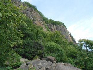 the cliff walk in Nyack by the Hudson river. My friend and author Mya O’Malley had told me about this beautiful hike the day before when we went to see her at the West Nyack Free Library Book Fair. The walk runs along the bottom of these magnificent cliffs, just above the Hudson. Here’s a view of river and the trail as we started off. Even the area near where we started was really neat, check out the stone walls above.