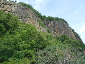 For much of the trail, woods rose up and obscured views of the striking rock wall, but frequently they cleared to show you these inspiring cliffs. Yang pointed out that you can also walk trails along the top of the cliffs – and walking along the river trail, you could see some trails leading upwards through the woods. I think a return in the fall, when autumn colors are blooming is clearly in order!