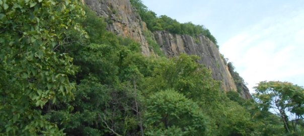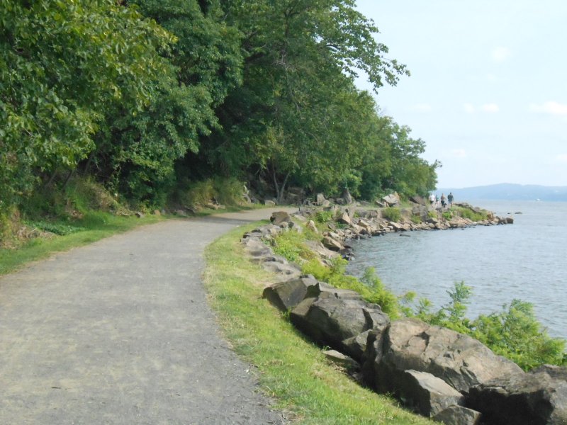 the cliff walk in Nyack by the Hudson river. My friend and author Mya O’Malley had told me about this beautiful hike the day before when we went to see her at the West Nyack Free Library Book Fair. The walk runs along the bottom of these magnificent cliffs, just above the Hudson. Here’s a view of river and the trail as we started off. Even the area near where we started was really neat, check out the stone walls above.