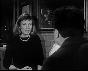 What is One Step Beyond? Well, the half-hour (23-5 minutes sans commercial) was one of the early horror anthologies of the time period I mentioned above – right in there with The Twilight Zone, Thriller, and (just a little behind these) The Outer Limits (original version). All filmed in glorious black and white. Part of what made One Step Beyond stand out from the others was that its stories were all allegedly true, taken from “the records of human history.” So, the crippled woman calling out for John Newland, himself, adds a unique touch. Neither skeptical like Serling nor sinister like Karloff