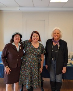 Probably my favorite event was the Book Launch and Reading I did at TidePool Books in Worcester.  It was the night I’d been waiting for!  Would you believe that people from all aspects of my life came?  My teaching years, my writing colleagues, my church, the Shakespeare Club, my old friend from years back!  I was so happy.  And I got to talk about the  films and books from the first half of the 20th century that influenced me with  imagery and atmosphere that was dreamy, eerie, haunting and their tales of obsession, vengeance, and sometimes forgiveness.  People were really interested in the three readings I did:  Jessica’s meeting in a cemetery with the husband of the alleged ghost; the reading I also did in Lowell; and a séance gone horribly wrong. My audience also had great questions about writing, about my characters and research, my writing process.  It was a dream.  One of my former students said that it was like being back in the classroom – and she meant it in a good way!  And it did feel like the good parts of teaching:  sharing ideas, getting people to think,  hearing what they thought.  You can see that I definitely dressed for the occasion.