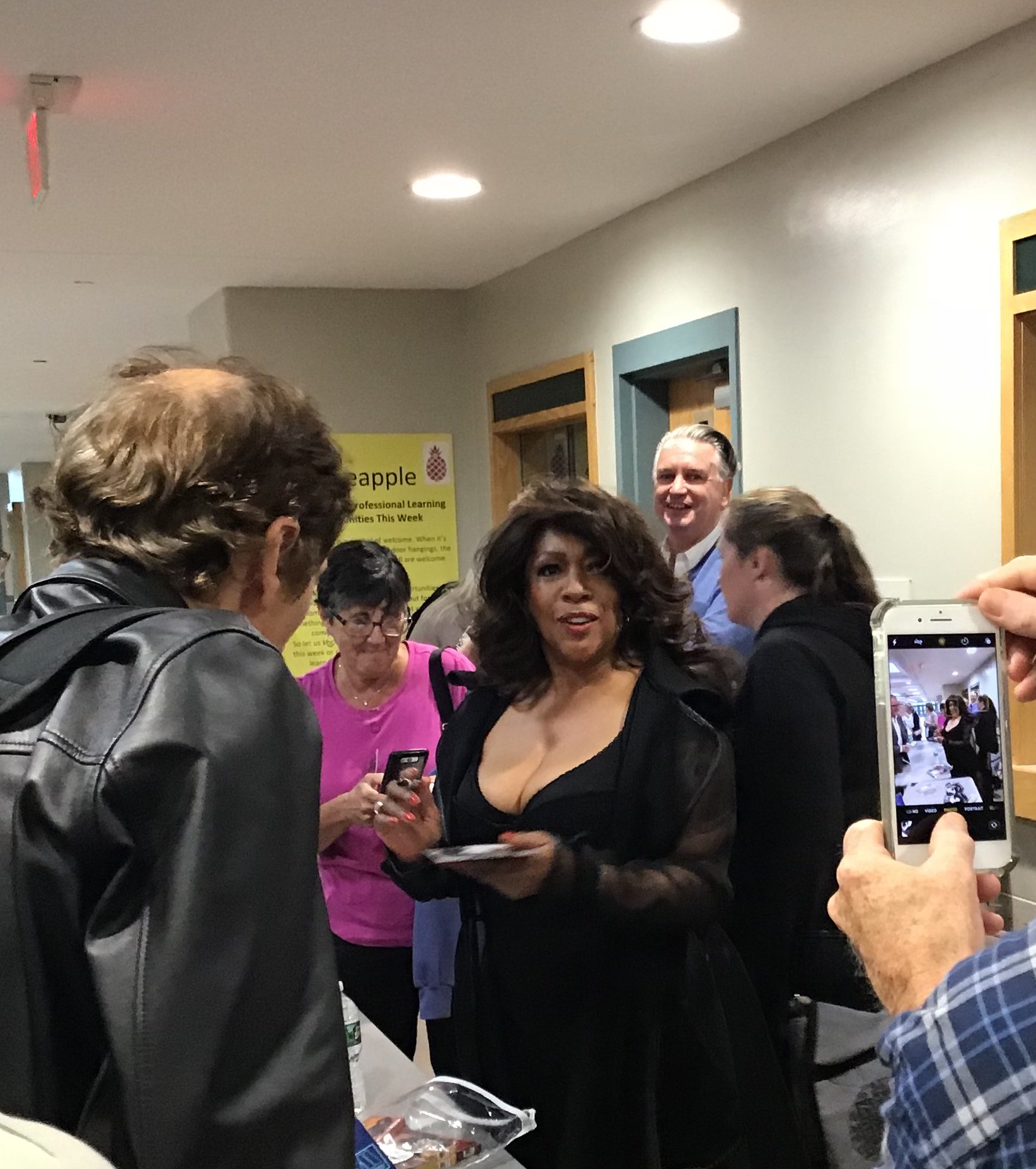 I’m also happy to say that I made some wonderful new friends amongst the other fans, discovering I had unexpected connections with the other folks who’d come back to “meet the Supremes.”  Everyone there, audience members, Supremes, members of the Supremes organization, just had a warm, fun time.  Yang and I appreciated that Scherrie was talking with him about speaking Chinese.  By the way, she said, “I love you” in Chinese very well.  I had quite a long chat, as well, with Joyce and Susaye about the group and writing. I was so touched later when Susaye Greene spontaneously gave me a big hug.  I think we bonded over our creative tendencies, love of music, my incorporating Supremes music into teaching composition, and our enjoying the humor of My Big Fat Greek Wedding.  I know I’m gushing, but it was just such a great experience.  It’s something we have to appreciate in these times when so many people think it’s acceptable to be cruel.