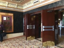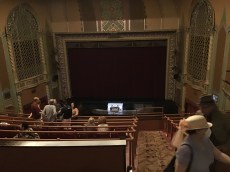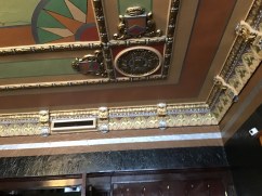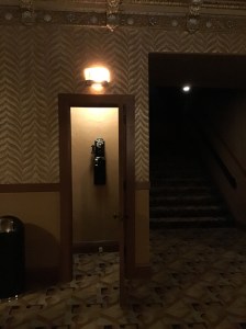 First, let me tell you about the theatre – and share some images with you, too.  Many of these are courtesy of Eve and Kayla.  You can see that the original marquee is not the same, but the outside still has much of the original feel.  Further, once you enter the lobby, you see wonderful polished wood doors and art deco detailing on the walls and ceiling.