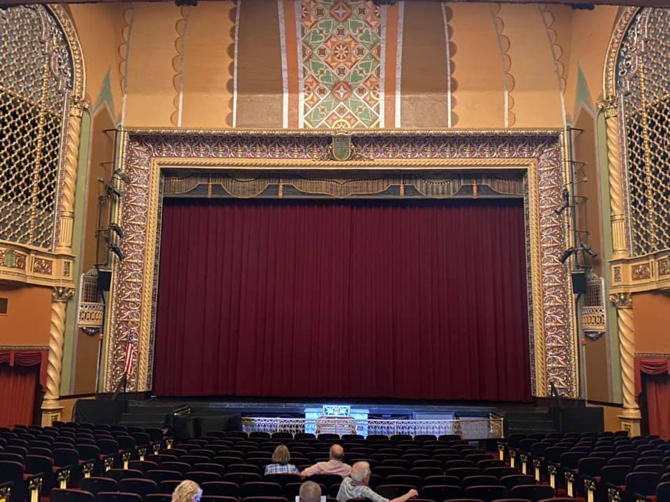 Note the organ just below and in front of the stage.  The theatre was built in 1928, so silents still would have played there in the infantine era of sound.  Also, people would love to hear pre-show concerts on that organ – before you got to the raffles, the cartoons, the newsreel, the Lower half of the double bill, then the feature.  Here’s a closeup of the organ.  We had a little concert, ourselves, before the start of Weekends Only.  (Note:  both these shots are courtesy of Kayla Sturm.)