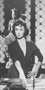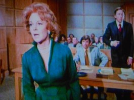 All the way to 1972, and our red-haired dynamo is still taking charge with wit, integrity, and insight.  In Heat of Anger, Hayward plays lawyer Jessie Fitzgerald, “the Portia of the Pacific.”  An established defense lawyer who’s not afraid to partner with rebel lawyer James Stacey for defending cantankerous Lee. J, Cobb, Susan is still on her toes, zipping around in her sports car and working the system with verve and smarts.  When the prosecutor attempts to cowe her with a sarcastic, “Your integrity overwhelms me,” she shuts him up with, “Well, I’ll embroider that on a pillow in needlepoint.” Partner Stacey tries to call her on snowing a jury into freeing a murderer, and she sets him straight:  “You win with the best case.  Juries decide.”  If Jessie raises an objection in court, it sticks. If the prosecutor tries to spring newly discovered information about her client in court, she turns it into evidence that could win jury sympathy and respect with, “No more coddling. Straight to the nerve.”  She even beats James Stacey at pool, as well as presses him to come out with what he hates about the client so that he finally gets on board with her.  And you better believe that client Lee J. Cobb, as much as he lumbers over her and snarls his anger, backs down under her steady and determined personality.  Yep, our auburn-haired whirlwind still had it!