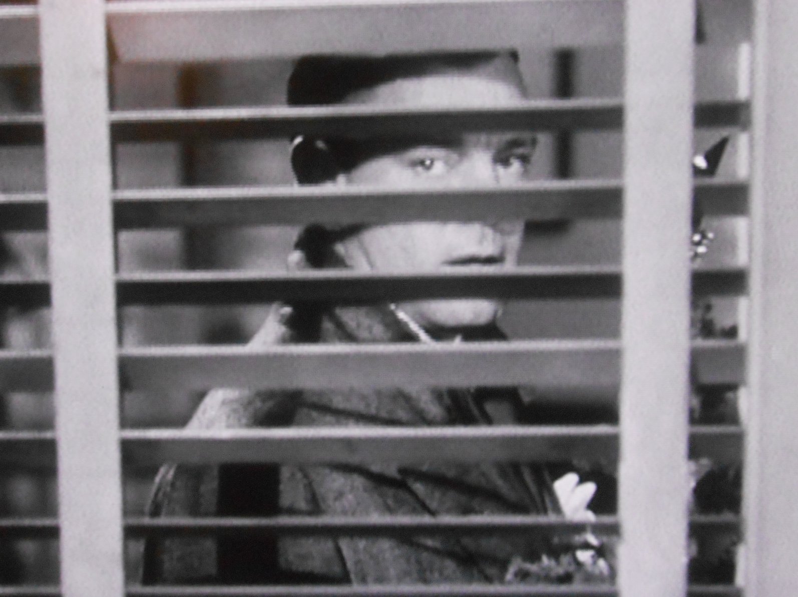 Dennis O’Keefe’s place in the noir universe as hard-bitten outsider trying to belong without sacrificing integrity makes him an apt proxy for the audience looking for order and stability in an uncertain and corrupt world. His character’s confrontation with Bendix’s sheriff in the shadows of the murder mansion where he’d planned to lure the murderer into a trap creates a disconcerting, even haunting embodiment of the danger of noir uncertainty. All on Christmas Eve. Interestingly, when the sheriff first enters, the visuals throw us off balance by placing Best more in the light and shadowing Sam, the seeker of truth, in a threatening, sneaky pose in the shadows. Which of the two antagonists can we trust?  Is Sam literally and figuratively in the dark? Is he bringing darkness into the Christmas world or revealing what was there all along? This use of shadows enveloping the men as the scene progresses creates a space of confusion and doubt that mirrors the uncertainty of reality as Sam raises suspicions and presses for honest answers, and the sheriff seeks to control that truth for unclear ends, gradually unveiling indirectly what may or not be honest.