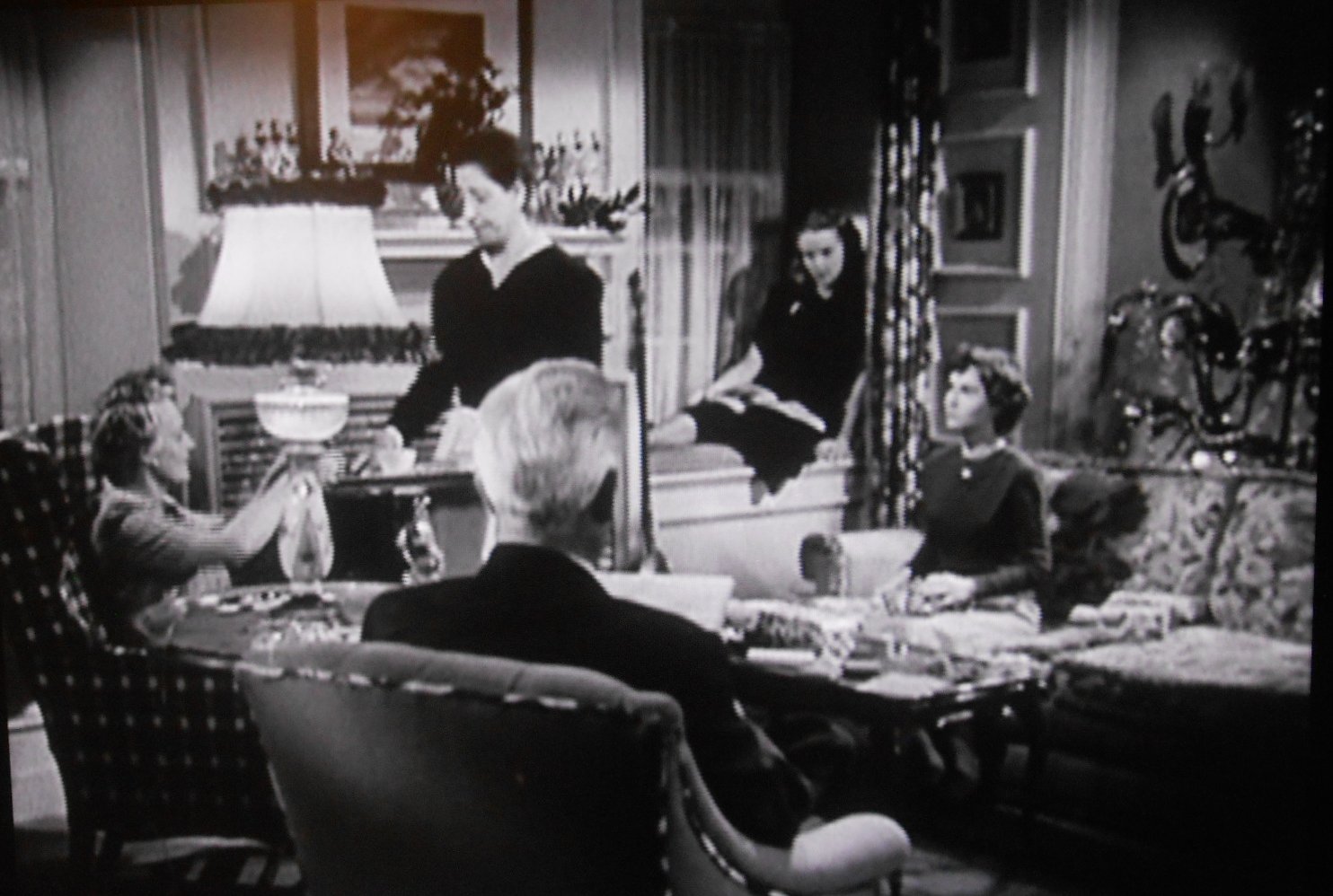 However, you can’t talk about the influence of movie smart-talking gals without showing some clips, can you?  For fun, we showed a clip from a 1938 Nancy Drew movies, where a teenage Nancy not only recognizes a kidnapping and tracks kidnappers in her car, only thwarted when her car has a flat – which she changes herself without missing a beat. Sisters were doing it for themselves in 1938, and we talked about how the wave of independence continued through the 1940s, in real and reel life.