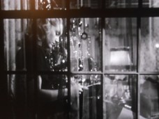 In this moment, though, we can see the corruption skinned over by good fellowship seeping through.  The doctor, at first, is mysteriously absent, then is revealed to be dead, discovered in his out-of-town home by the sheriff.  Significantly, this scene of camaraderie in solstice celebration ends with the faces of disappointed children and the pine tree’s lights flickering against almost enveloping darkness.  Furthermore, as light and warming as are the interiors of the Weatherby home, the night outside where Sam and Anita walk and romance is surrounded by dark shadows and implied cold.  The mansion where Philips died also encompasses Anita and Sam, later Sam, Sheriff Best, and Mr. Weatherby, in shadows that distort, conceal, isolate, and threaten.  In a telling scene, flickers of light in the darkness come to imply perfidy and corruption as the “lovable” maid Hilda resolutely undercuts Sam’s quest for the truth and order by burning a beaver coat that implicates Mr. Weatherby in Phillips’s murder.  Interestingly, the coat no longer suggests protection from hostile nature but implicates the “upright” in crime.  Now suicide is revealed to be murder, while the victim is, himself, revealed to be “a malignant growth strangling the town.”  So, where does justice rest concerning this death?
