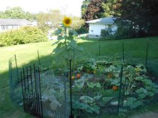 We didn’t have the best of luck with our sunflowers, as some form of insect (we think beetles) brutalized the plants grown from seeds planted directly into the garden. However, after a daily spraying of tabasco sauce in water to drive off the insects, most of the sunflowers recovered. Some even grew up to full height and even better than the ones we’d protected by growing them as seedlings in cups before planting.