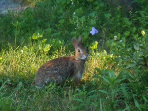 It’s a good thing that we have fencing up around our vegetable garden, because we are not alone.! This is one of the rabbits that we’ve seen in our yard.