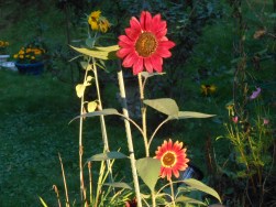 We’ve been enjoying nature quite a bit this summer, between our own yard and our peregrinations about the Northeast. Several of my friends have been posting images of their luscious vegetable gardens, so I thought I’d show how well our plants are doing this season. We’ve planted one patch with tomatoes, yellow beans, egg plants, and peppers. As you can see they are growing beautifully!