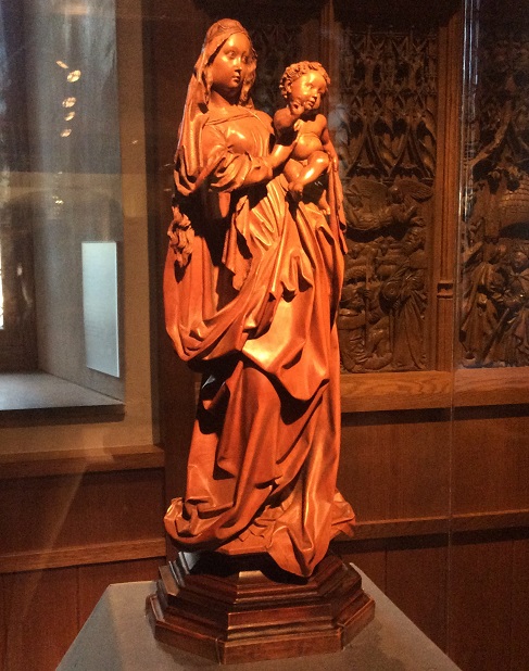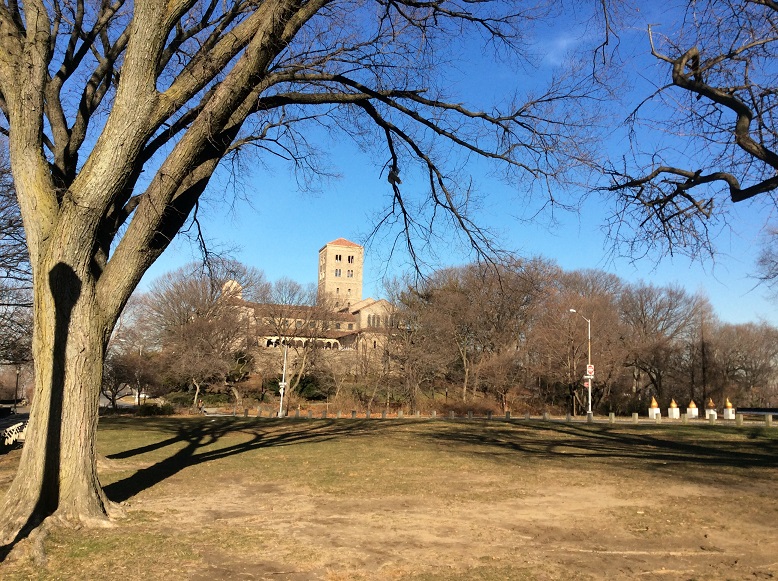 Many moons ago, back in grad school, my friend Andrea Rossi Reder told me about this wonderful museum of Medieval and Renaissance art, the Cloisters, that was constructed like a medieval cloistered monastery. It took me a few years to get there, but my husband and I visited one spring some time ago. It was a beautiful place, near Fort Tryon Park, overlooking the Hudson River. I not only enjoyed all the exquisite art and the ancient-styled construction, but loved wandering the herbal garden in the sun and warmth of spring. Last week, my husband proved is is indeed “goals” by taking me back there after another stretch of many years. This winter visit had charms of its own. I had forgotten just how much I enjoyed the museum.After taking the A-train from the 125th St. station, we hopped the 100 Bus to St. Nicholas Street, then another subway, and we were right outside Fort Tryon Park. Crossing the park showed us the bleak beauty of winter, the red bar berry bushes, crimson hemlock berries, and the frosty-blue berries of another type evergreen.