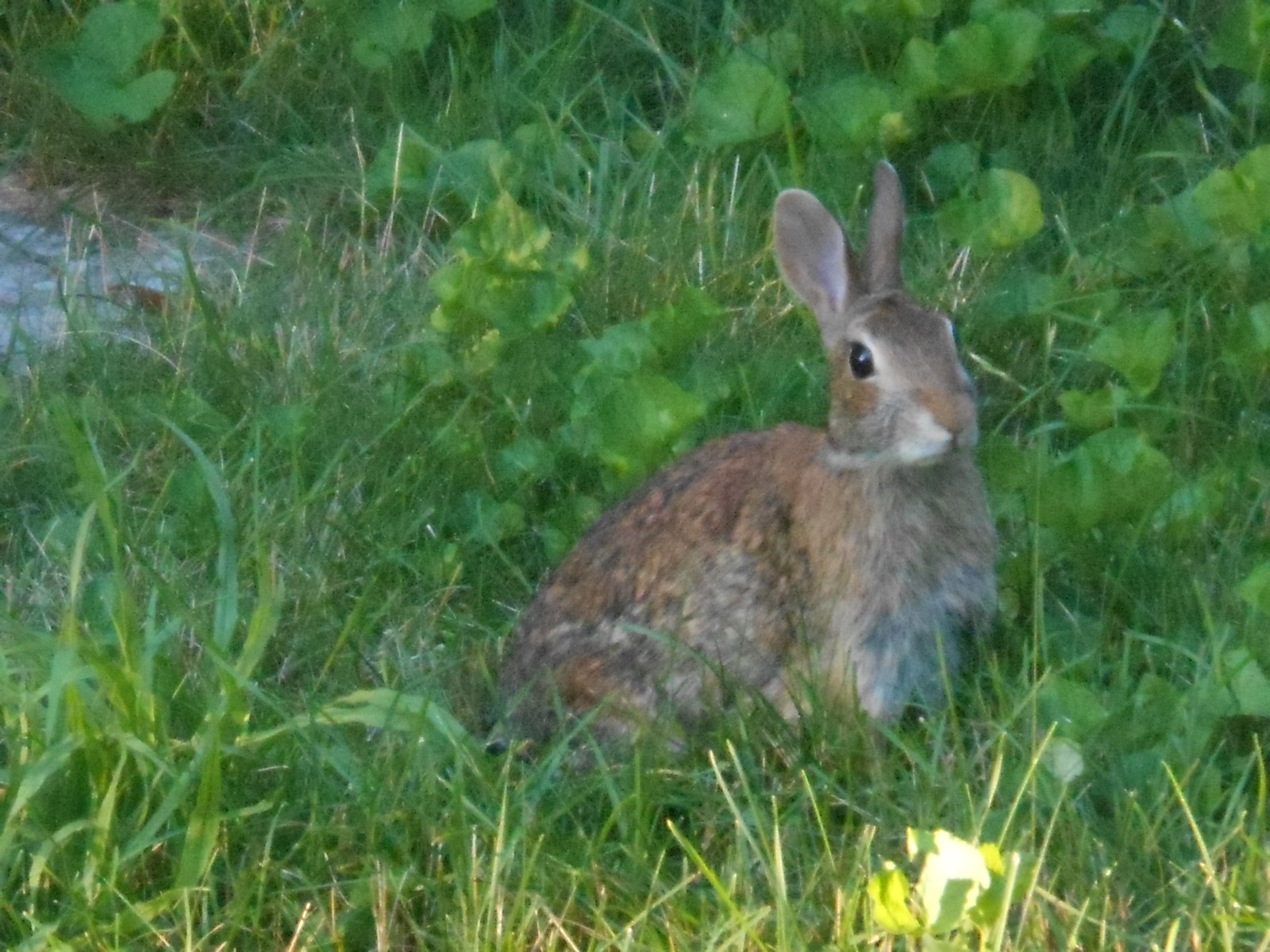 It’s a good thing that we have fencing up around our vegetable garden, because we are not alone.! This is one of the rabbits that we’ve seen in our yard.