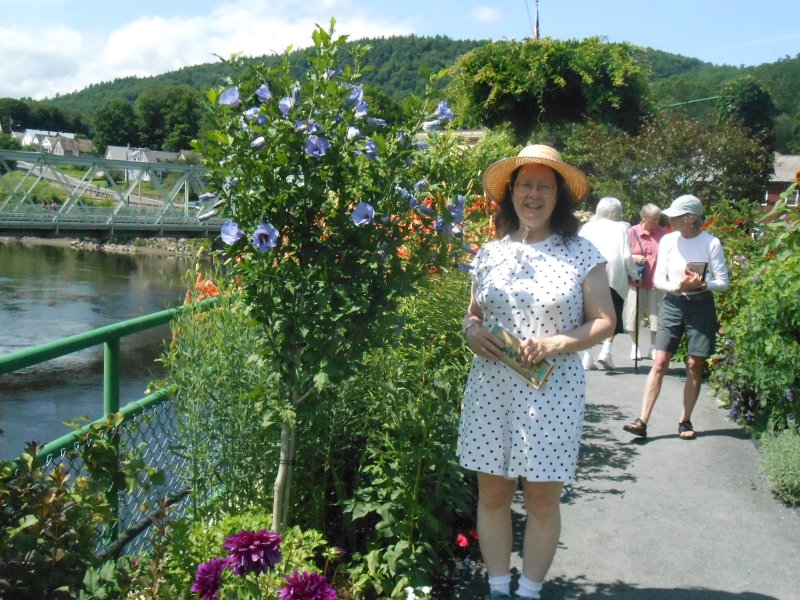 Last weekend, we had a mini-vacation in Vermont, connected to my day at Bookstock. What a great time! We’re so fortunate to be living in New England. Friday afternoon, we took a leisurely drive up to Brattleboro to have an early supper at our favorite bakery on Main Street. In a space overlooking the river and mountain, we watched a thunderstorm roll in while we enjoyed a scrumptious olive tapenade/goat cheese/walnut salad and a cappuccino. The storm passed; we rolled out for Springfield, Vermont and the Toonerville Rail Trail.