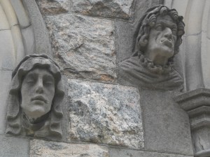 Particularly interesting, were the head sculptures adorning the outer walls of the church.  I wondered if some of them reflected the founding members of the Church – not all of them, though.  You’ll see what I mean when you take a gander at some of their visages.  Here is a solemn  dame, who seems right at home in a Medieval world.