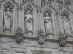 We were expecting a Catholic, or at least an Episcopal. cathedral. So imagine our surprise that this ornately appointed church  turned out to be a Unitarian/Universalist place of worship.  Even the Parish house of the Unitarian Memorial Church was replete with gargoyles and saints.