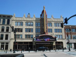 I was  struck by the Providence Performing Arts Center.  This gorgeously ornate building covers an enormous amount of territory.  It seems like an entire block.  The front is impressive, predominating the view at this end of Weybosset Street.  The sides are no less impressive. Originally built as Loewe’s Movie Palace  in 1928, the theatre opened to an audience of 14,000. Loewe’s went through some tough times in the latter half of the twentieth century before its redesign as a  successful  multipurpose performance venue.  Click here for  background on this magnificent building.