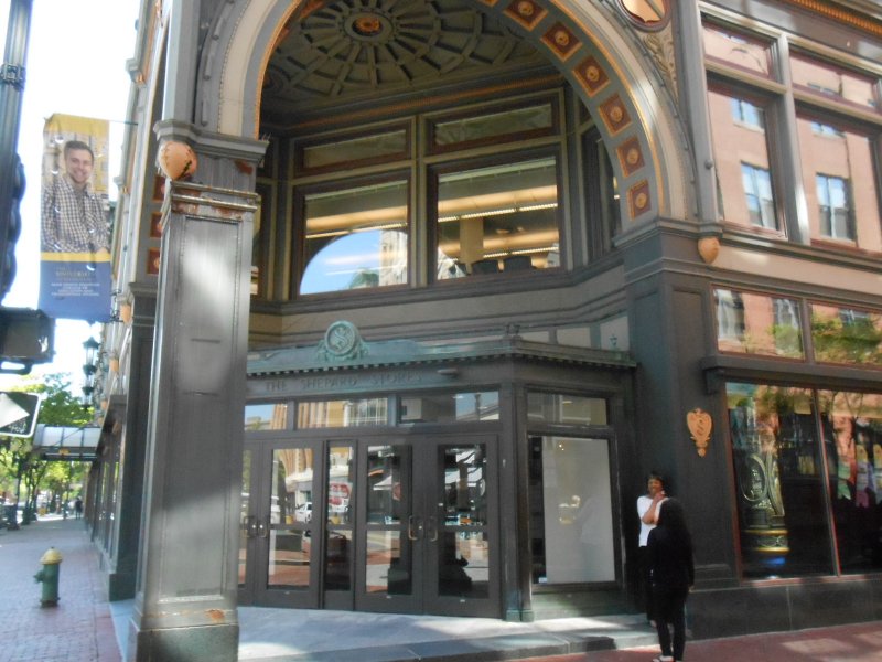 The same day that we visited Battleship Cove, we also gave ourselves a walking tour of the older architecture in the downtown section of Providence.  Yang and I had come here for a walk once before in the winter and marveled at the beautiful buildings with their ornate decorations.  We’ll start with the Shepherd Department Store Building.