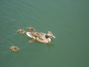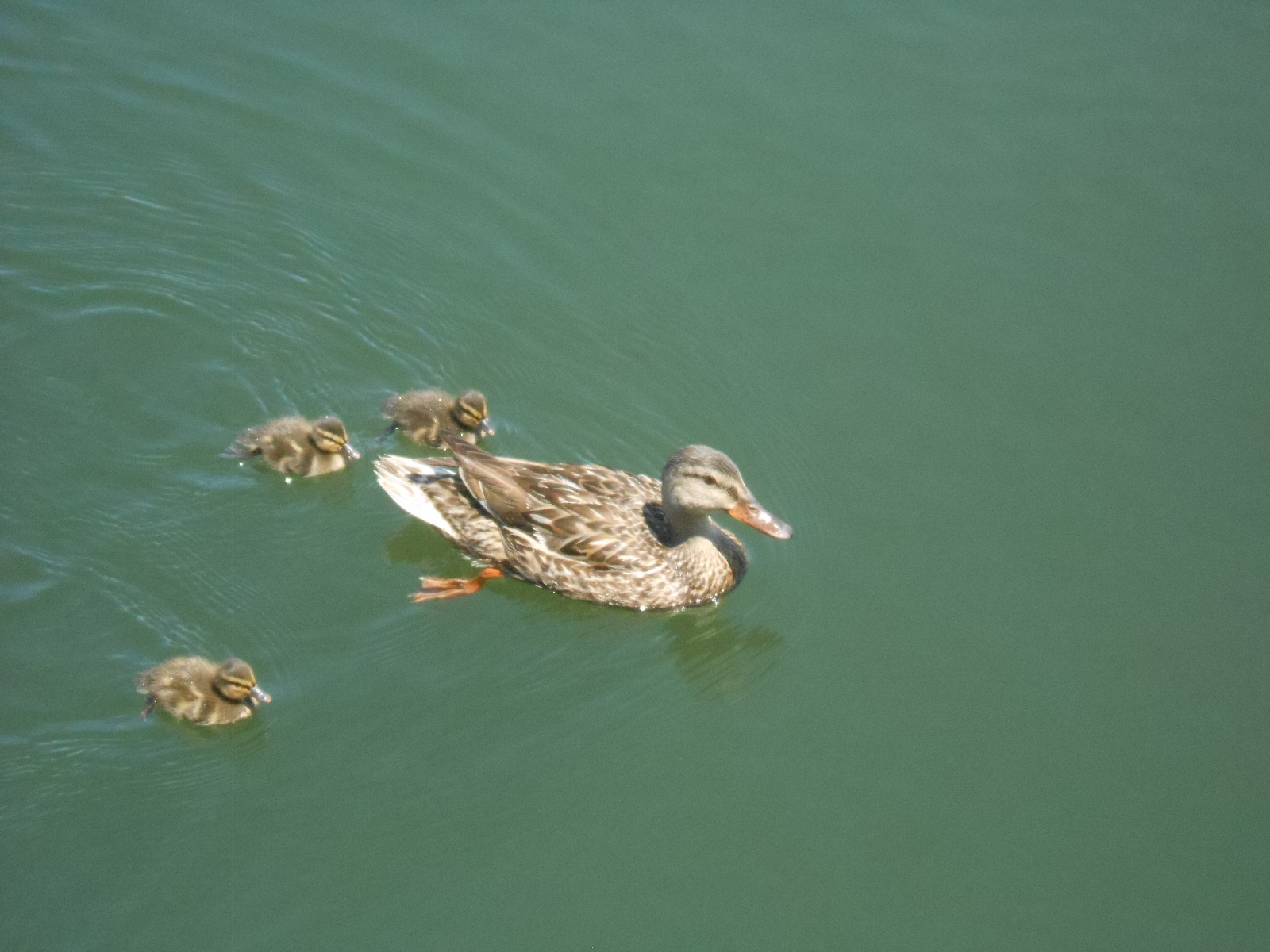 There was also a mamma Mallard with her three babies scooting around.  It was cute to watch her leisurely paddling while her kiddos worked those webbed feet furiously to keep up!  Someone commented that this must be her second clutch, since they were so little so late in the season.