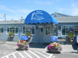 In the midst of all that God-awful rain last week, we had a day full of sun and warmth on Tuesday.  So we hopped in our car and headed for the Connecticut shoreline and some of our old haunts!  First, we stopped at Bill’s seafood for our annual (and more often if we can!) fix of lobster rolls!  Mmm, Bill’s has the best, with a handy helping of crisp and hearty french fries and cole slaw with a nice tang. You can see Yang enjoys his repast!