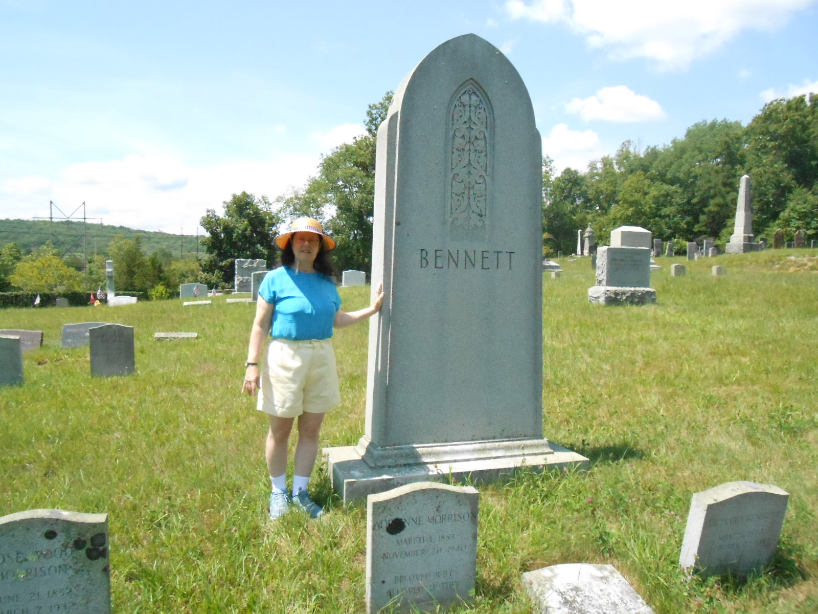 After Bill’s, it was off to Old Lyme to visit Joan Bennett at the Pleasant View Cemetery.  there used to be a riding academy and horse-boarding farm across the street, so I used to think that Joan, who was a rider, would have found that view pleasant, indeed.  Today, the grass wasn’t too bad in the cemetery, and it was filled with butterflies.  I saw a Monarch, the Black Swallow Tail in this picture (thanks to Charmaine Kinton for the i.d.) and a beautiful bright yellow butterfly (no, not a Tiger Swallow Tail).  I know Joan loved yellow and butterflies are symbols of the soul.  Do you think she was  saying “hi” to me?  I also noticed that there was a sign for a house for sale on the street.  should we all chip and buy it so that we visit our friend more easily – and keep the grass trimmed?  I also noticed that Joan had a cousin, Patricia Morrison (not the actress), who died very young.  Does anyone know the story there?
