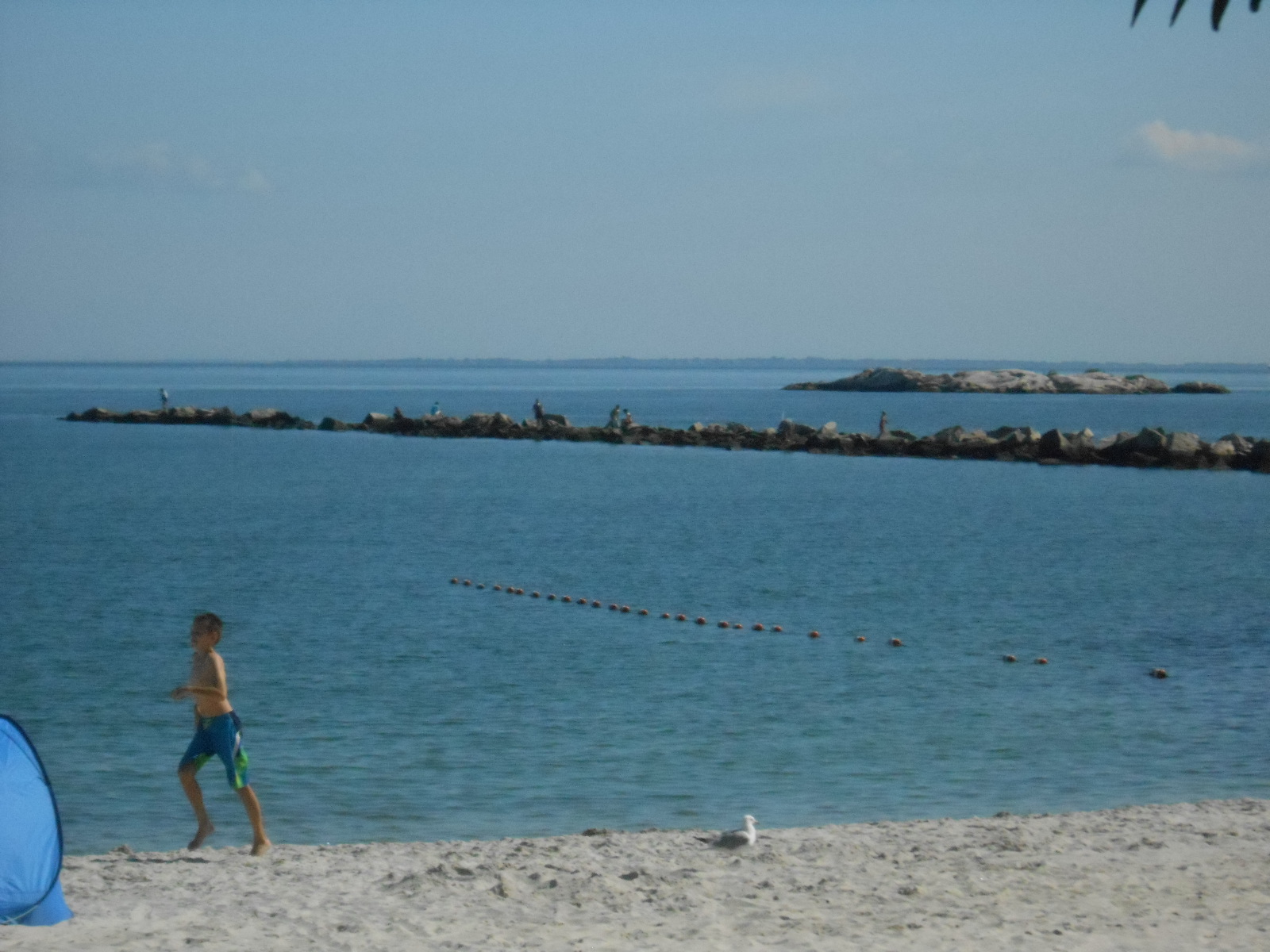 As usual, we sat on the deck, which is next to a river and salt marsh flowing to the sea.  We especially love to do that because you always see loads of seabirds there.  This time, we could espy teenage ospreys in their platform next out in the marsh, while wild cries overhead alerted us to their hunting parents flying overhead.  We couldn’t take pictures because the platform was too far out, but we’d remembered to bring binoculars.  so, we got a good look at the young osprey.