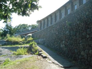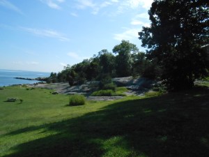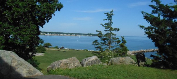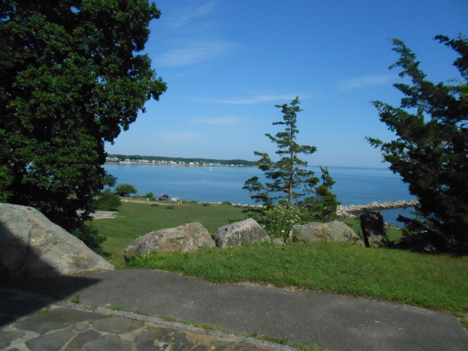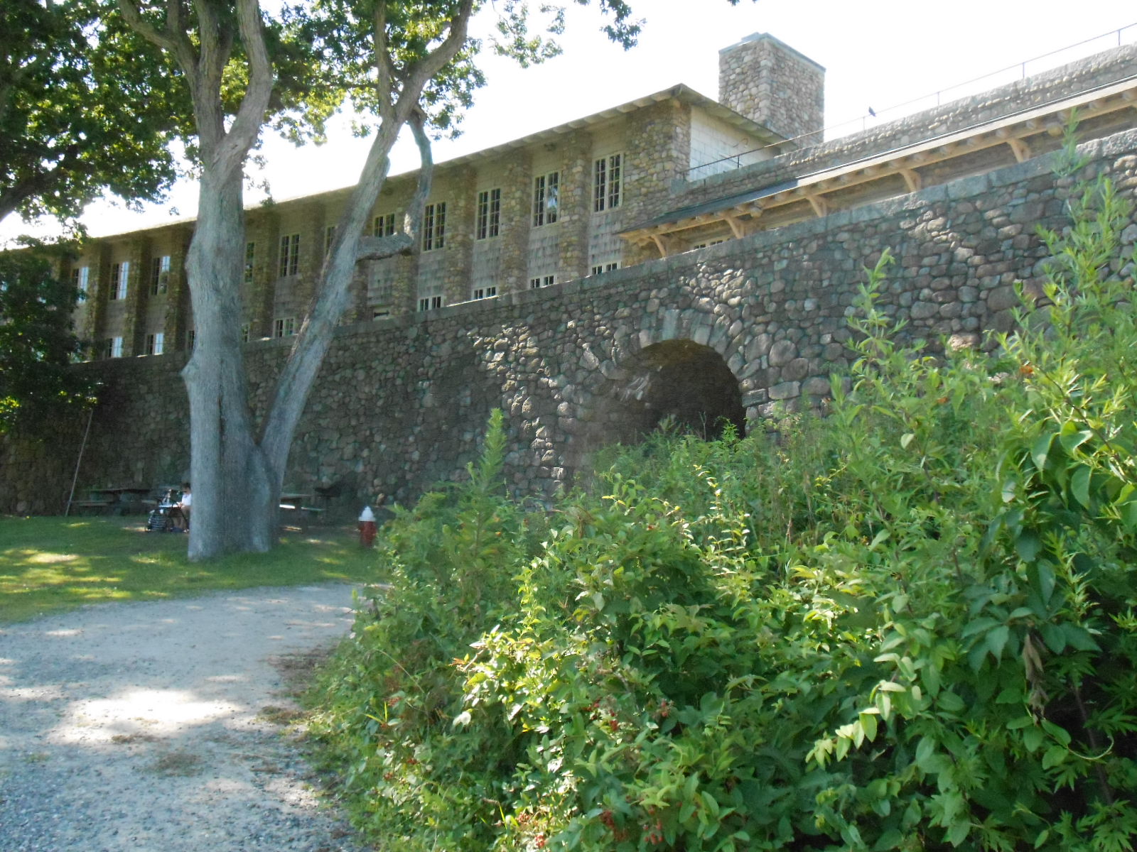 Finally, we moved on to the beach and then up to the huge, field stone pavilion that had been built in the 1930s as a WPA project.  The building was one of the reasons Yang had wanted to come here.  He’d been reading the draft of my third novel, Always Play the Dark Horse, and its description of the setting whetted his appetite to return to one of our favorite places to go walking.  The pavilion is a long building with beautiful hard wood floors inside.  Couldn’t you just picture a big band playing there, and people dancing on a summer’s eve with a tangy salt breeze cooling off all those hot cats and kittens?  It turns out you can rent it for $3,750 for a gathering of  under 200 people.  A larger number is less expensive.  Any one want to GoFund a swing night there – and I mean swing dancing!