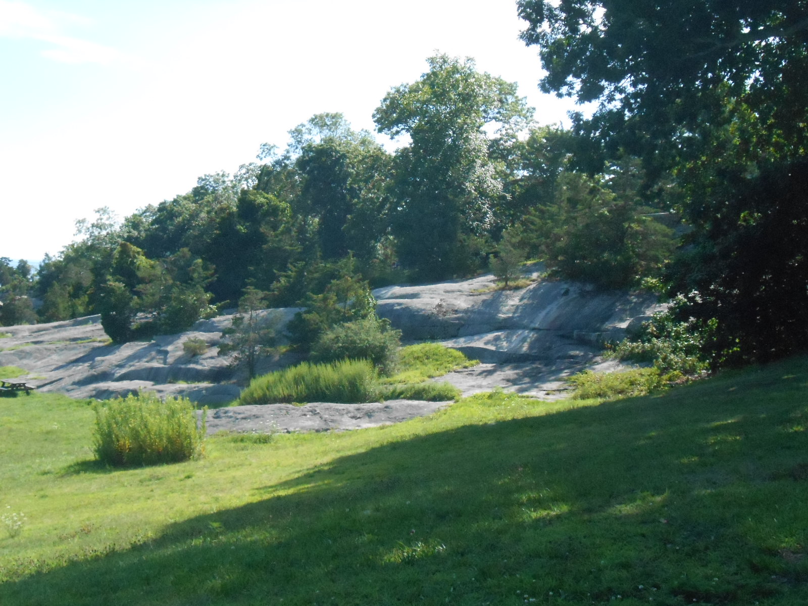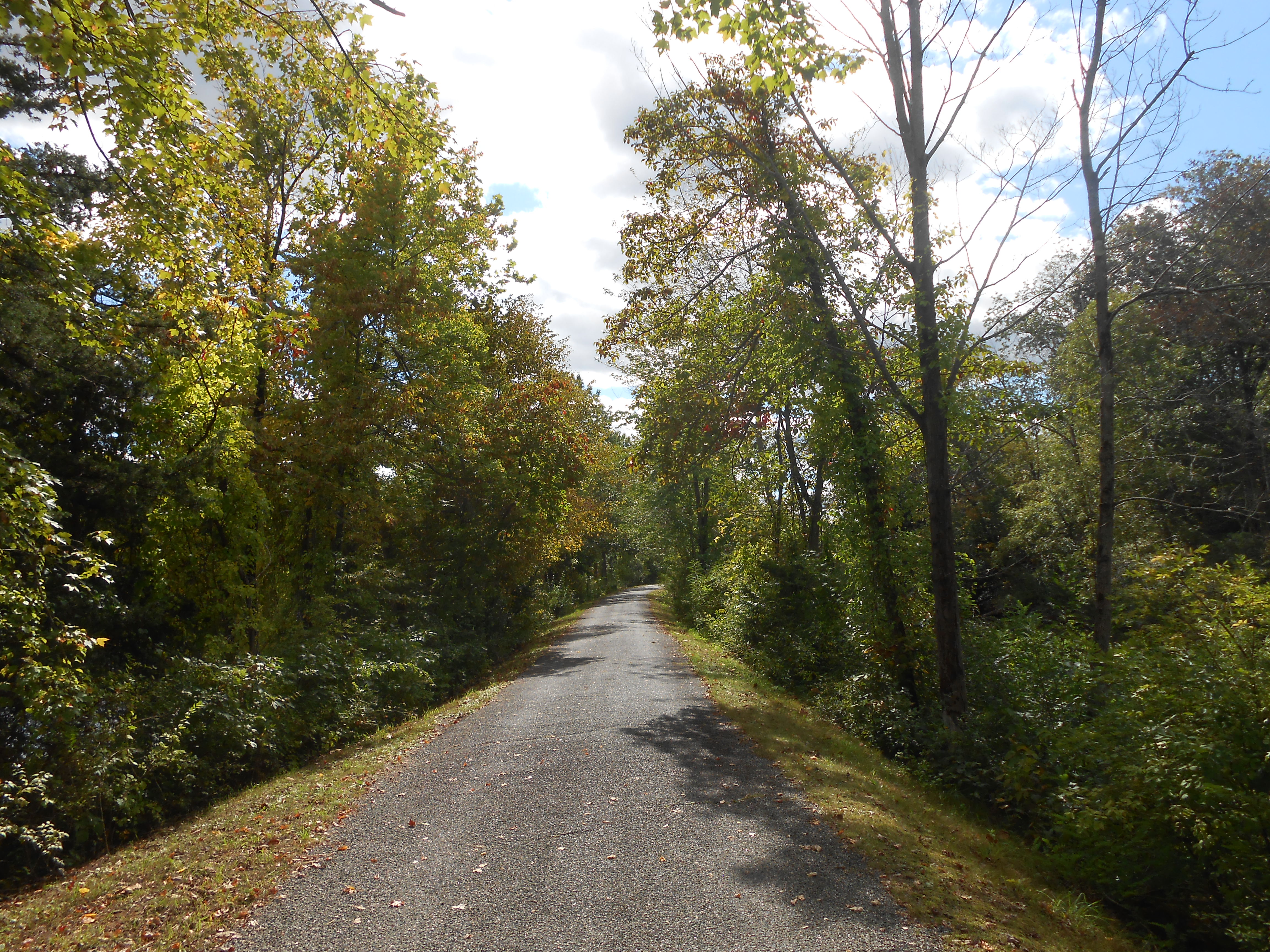 Sterling1Recently, Yang and I decided to take a Sunday morning walk, while it was still relatively cool, in the wooded rail trail in Sterling , MA – right behind the center of town. As you can see from the sign, DSCN2858the name of the trail is  the Mass Central Rail Trail.  It runs about a mile and three quarters one way, so round trip is about three and a half miles – too short for a bicycle ride, but nice for a walk.