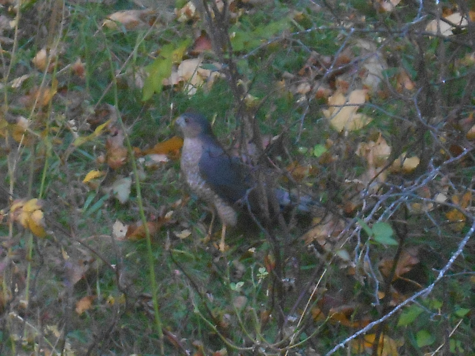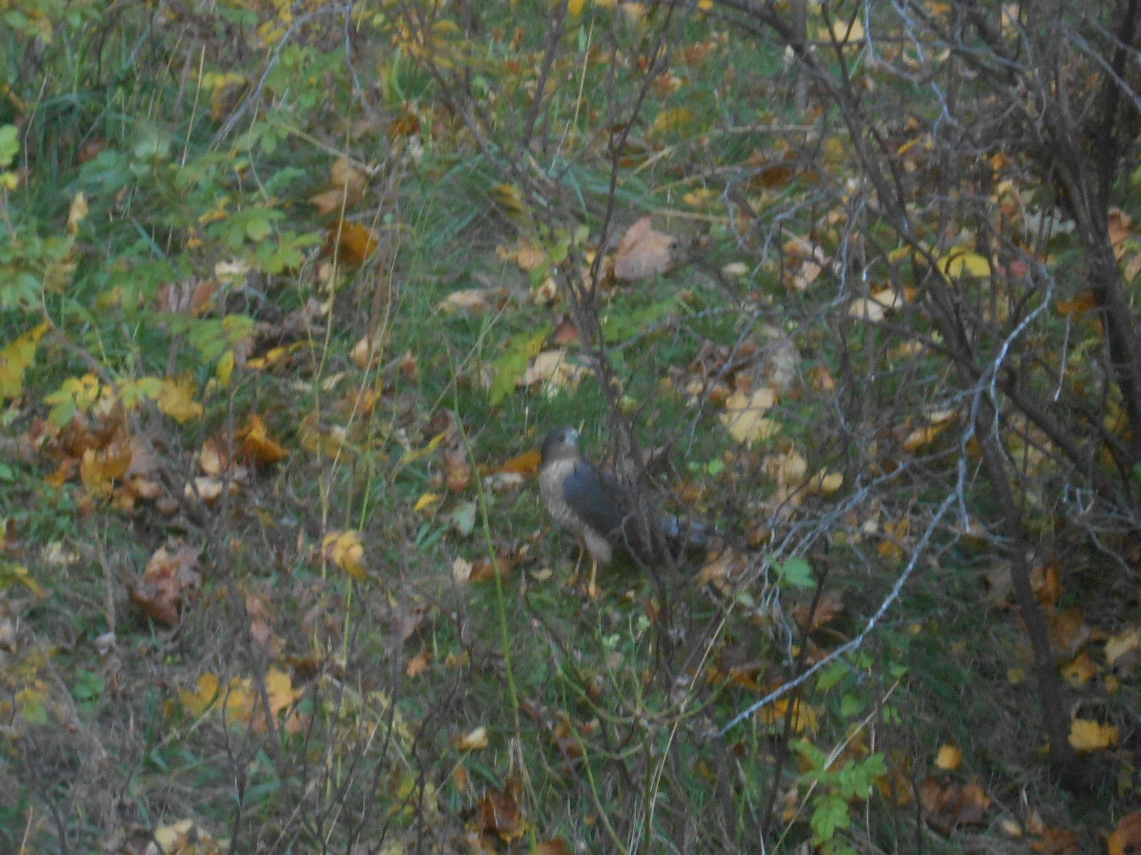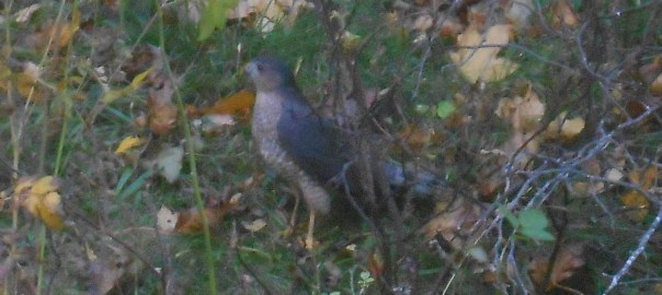These past few weeks, Yang and I have had some wonderful bird sightings, sometimes, literally, in our own back yard.  Case in point, one Friday, Natasha was meowing at the door all day. Then Rosalind was in the pantry window bird-chattering away, while I worked on my novel in the dining room.  I stopped and suddenly became aware that I’d been hearing a high-pitched hawkish call.  I got up and looked out the window in the dining room, and what did I see in the patch of sea roses, but two Merlins!  One flew away, while the other hung out for some time – before attacking a sparrow who out-smarted him.  I got these pictures through the window because I was afraid going outside would drive my visitor off.  Hence, it’s much blurrier than I’d like.  What do you think of this new guy?  I haven’t seen him since, but I did find an ominous splash of tiny white bird feathers on the nearby back porch.