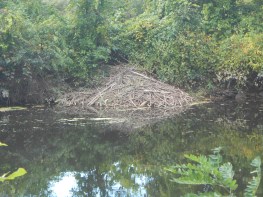We did see lots of neat critters that day, though we couldn’t always get a shot for one reason or another.  I did get this picture of a beaver’s den on the bank of the opposite side of the canal.  There were at least two of three of them along the way.  Apparently the beavers are starting a development here.  We also saw a majestic Great Blue Heron on the canal banks opposite, lots of Mallard’s hanging out, turtles basking in the sun on logs, and even a Cormorant scanning for fish from a dead tree extruding into the canal.