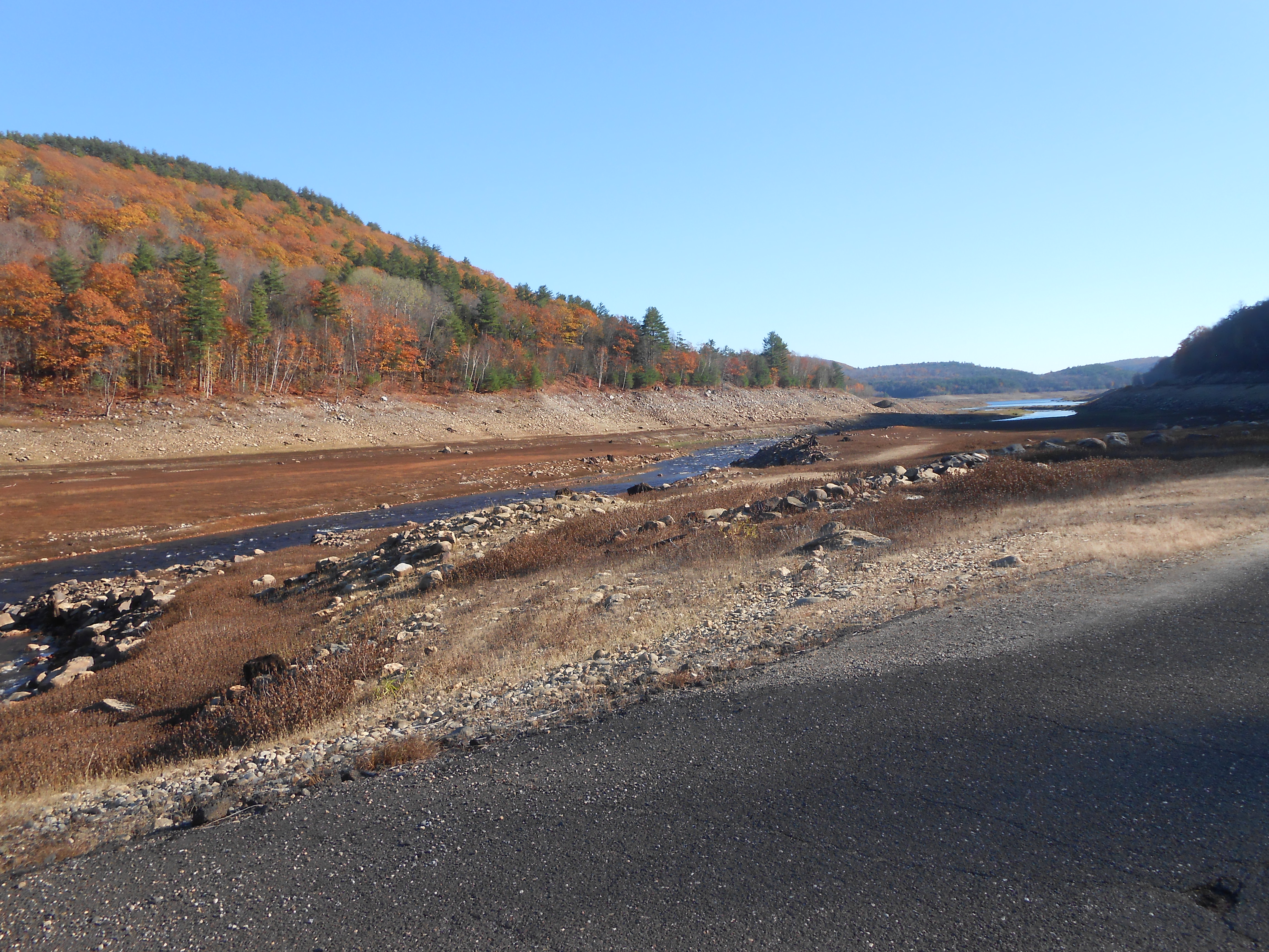 Two years ago, Yang and I made our first trip to Colebrook Reservoir on a brisk Halloween afternoon. What a treat!. After at least a year of drought, the old Rte. 8 was completely clear and dry of the water. We even saw part of the “ghost bridge” and the stone walls marking the boundaries of farms in what had once been a community displaced by the formation of the reservoir. That day, we saw our first slate-colored juncos of the season, while the fall colors were still in bloom. (Check out an earlier blog on our adventure here).