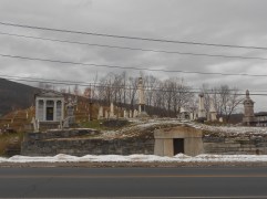 last gasp at wintry images with Part 2 of my report on the Hillside Cemetery of North Adams. Across the street from the original portion of the graveyard, lonely mountains rise up to close you you in and the rest of the world out on this grey day.