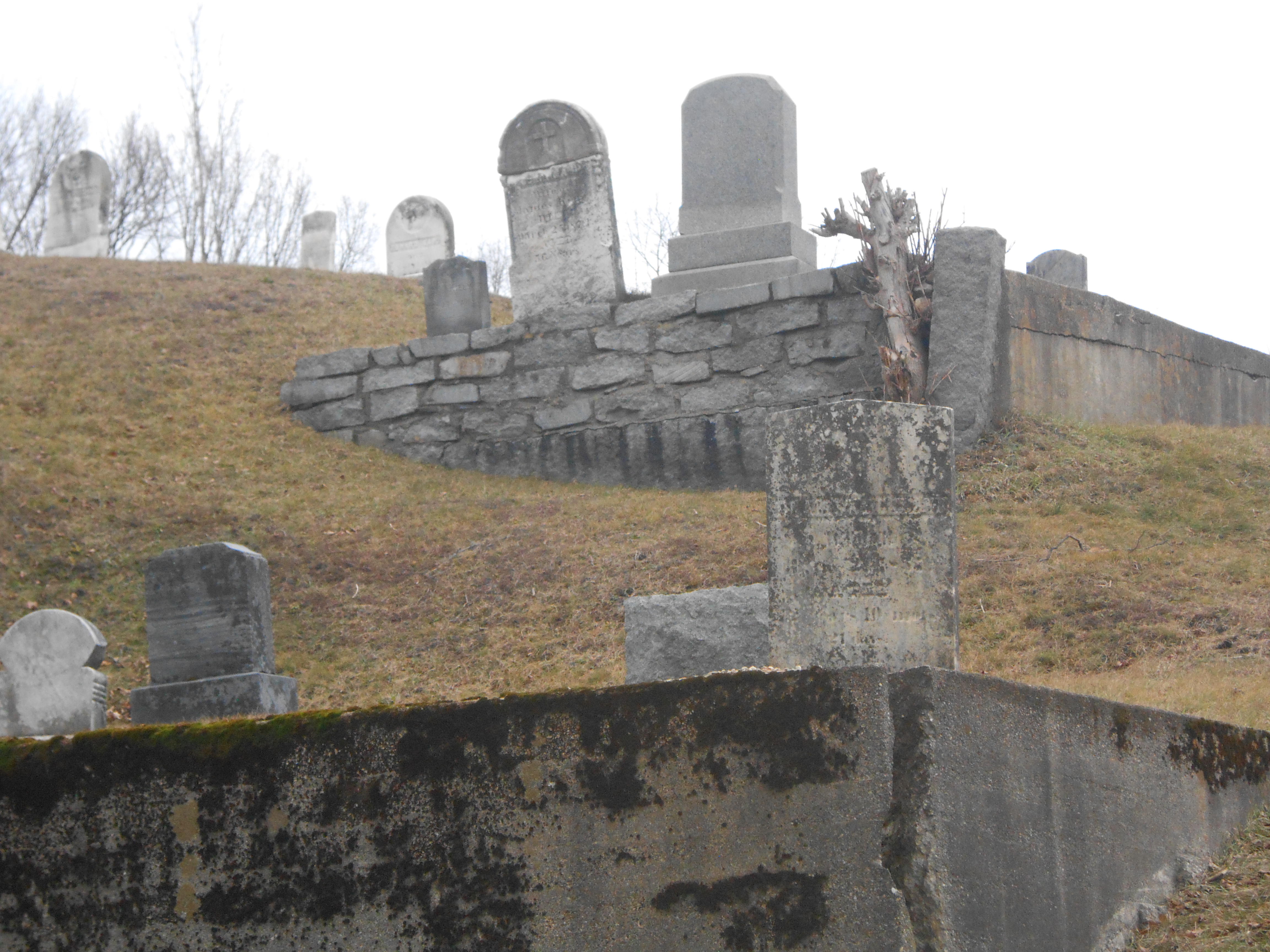 hillside. With the rolling slopes here, the graves, mostly 19th century, tilt and are almost upended as the ground has settled and shifted over the years-or is someone or something trying to push out?