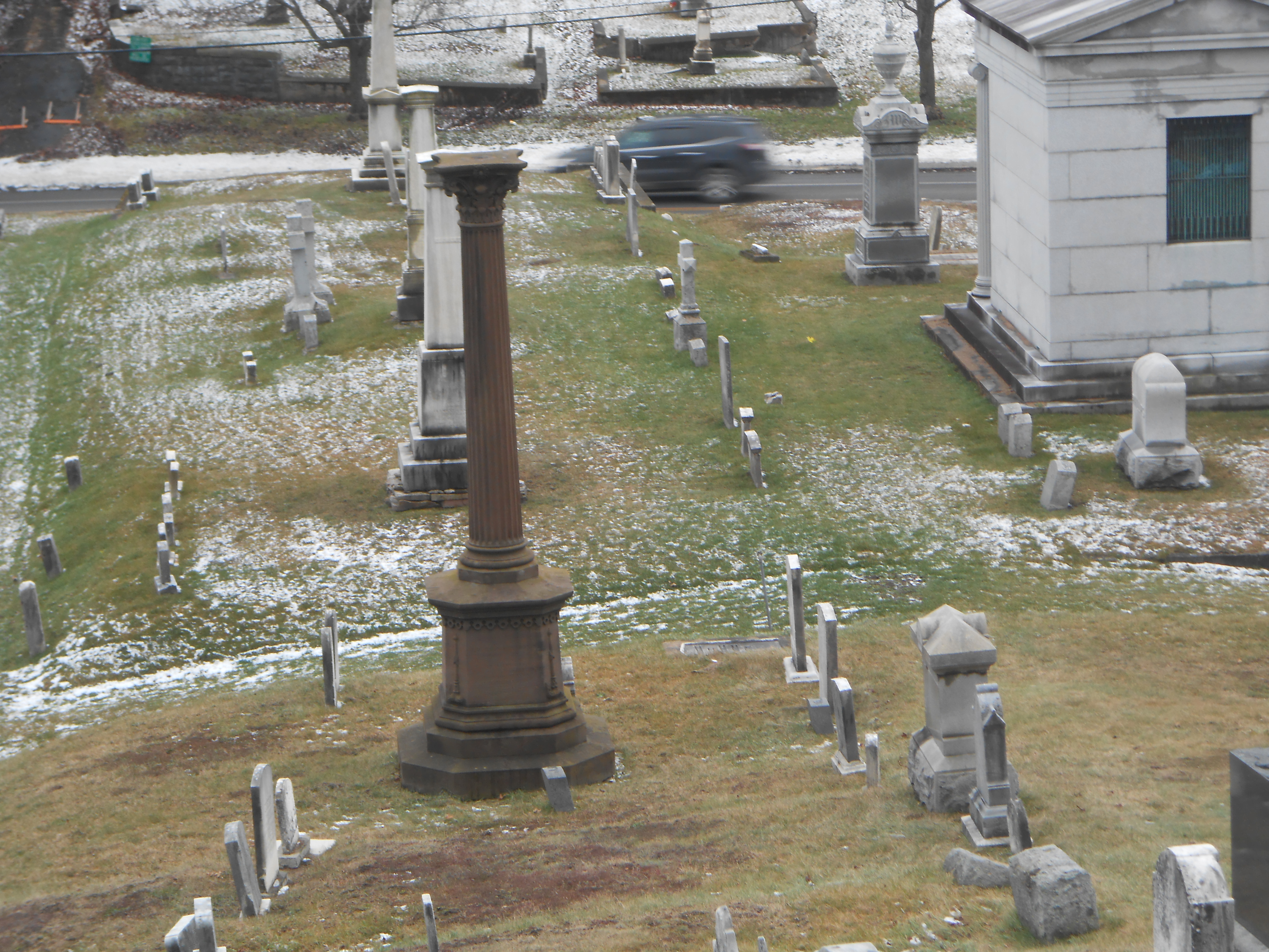 And those slopes are pretty darned high, too, with gravestones and monuments, bleakly, implacably towering upward from an earth both browned by autumn and frosted by snow.