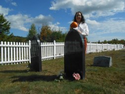 This month has blue moons, two in one month.  The first day of October this year was the first full moon of the month.  So, we celebrated  with a trip to New Hampshire that was a triple header for us.  First, we visited the grave of my favorite actor, Claude Rains, in the Red Hill Cemetery.  It’s a small, peaceful place, with lots of firefighters R.I.P.ing there.  The graves of Mr. Rains and his wife Rosemary are beautiful polished black stone Gothic arches.  To pay tribute, we brought one of the pumpkins that we had grown ourselves this year.  I liked presenting a little gift that Yang and I had worked hard to cultivate together.  The foliage by the cemetery hadn’t quite turned yet, but there were still some pretty trees.  When we go a bit later in the season, you often see some magnificent colors.  Check this link to a blog with pictures of the foliage in a past visit.