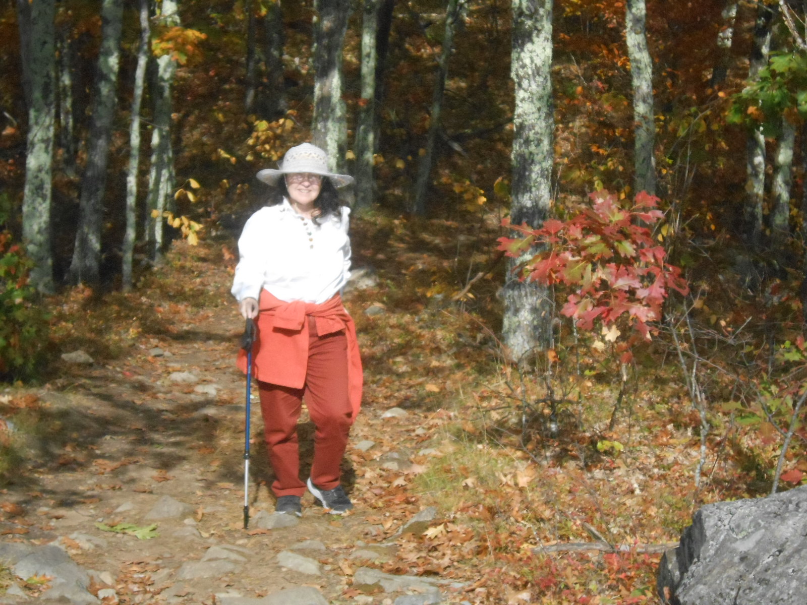 Next on the agenda was to hike the Mt. Roberts trail in Moultonborough.  It’s on the grounds of the Castle in the Clouds, but it’s free to visit and hike.  Usually, we go up Red Hill, but I asked if we could start with something that ascended a bit less steeply, as this was my first major mountain climb of the year-major for me, anyway.  It really wasn’t all that easy, but the hike was definitely worth it!  We enjoyed the terrain, the changing colors, sighting a Brown Thrasher and a Wood Thrush (thank God for binoculars!).  When we got to an overlook, we sat and ate tea eggs that Yang had made, then chunks of the yummy pumpkin bread I’d baked the night before.   I was tired when we got back down, but I loved it!  There are lots of trails on these grounds, so I’m looking forward to going back.