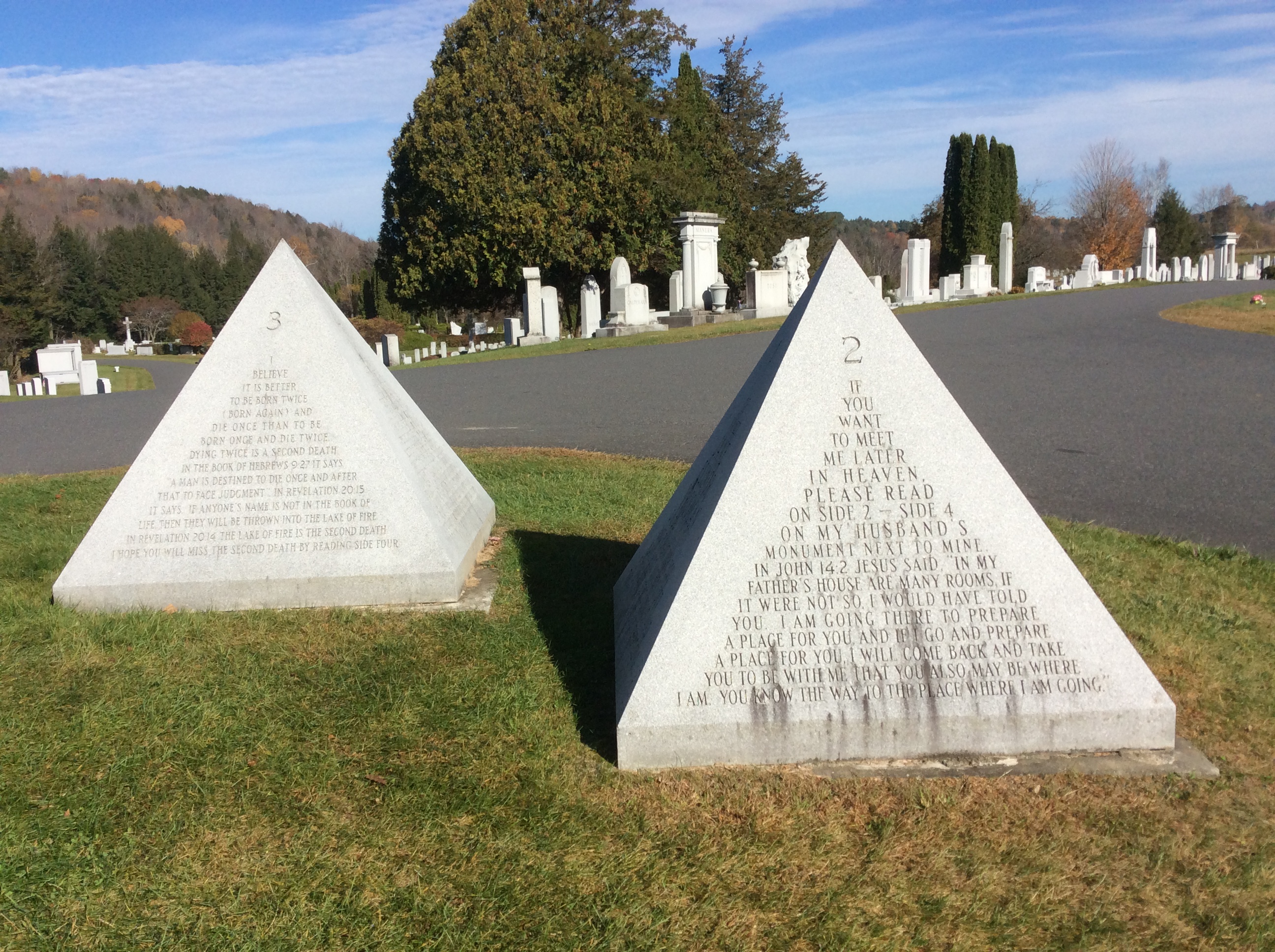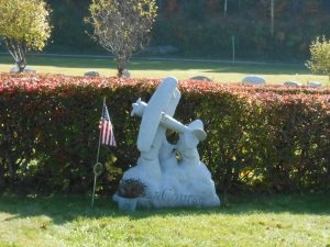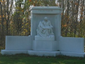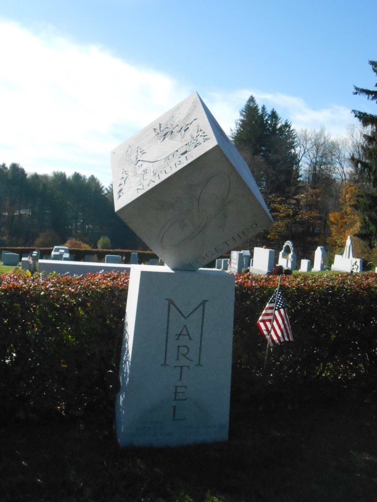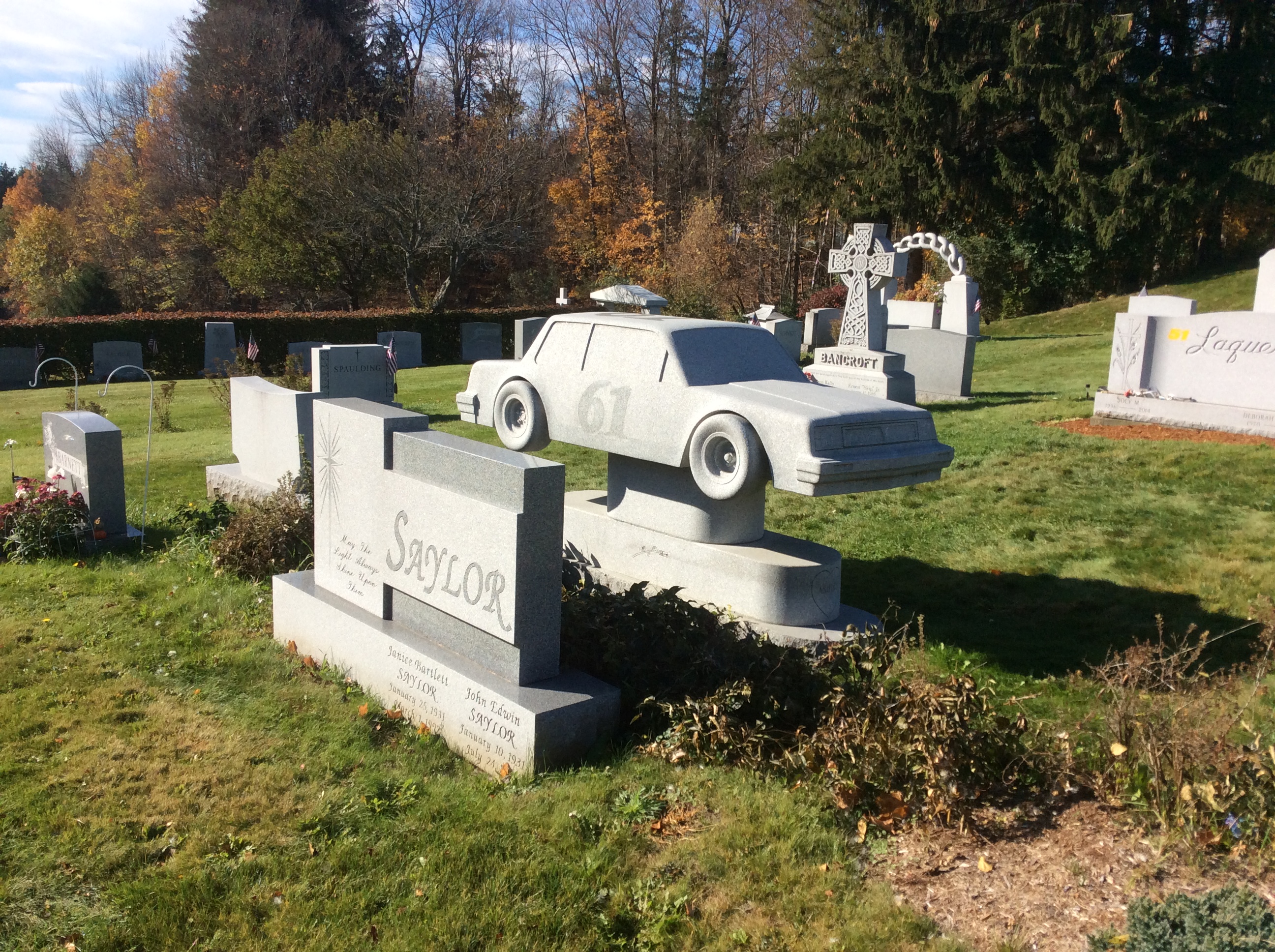 I hadn’t had a chance to do up a blog of this wonderful, remarkable cemetery in Barre, VT before,  which Yang and I visited three years ago in the Fall.  What makes the spot so unique?  Well, this town in Vermont is famous for its marble quarrying and this local product is beautifully worked to produce the most creative, unique monuments.  Many of these take on unique forms to honor the life work or interests of those they honor in death.