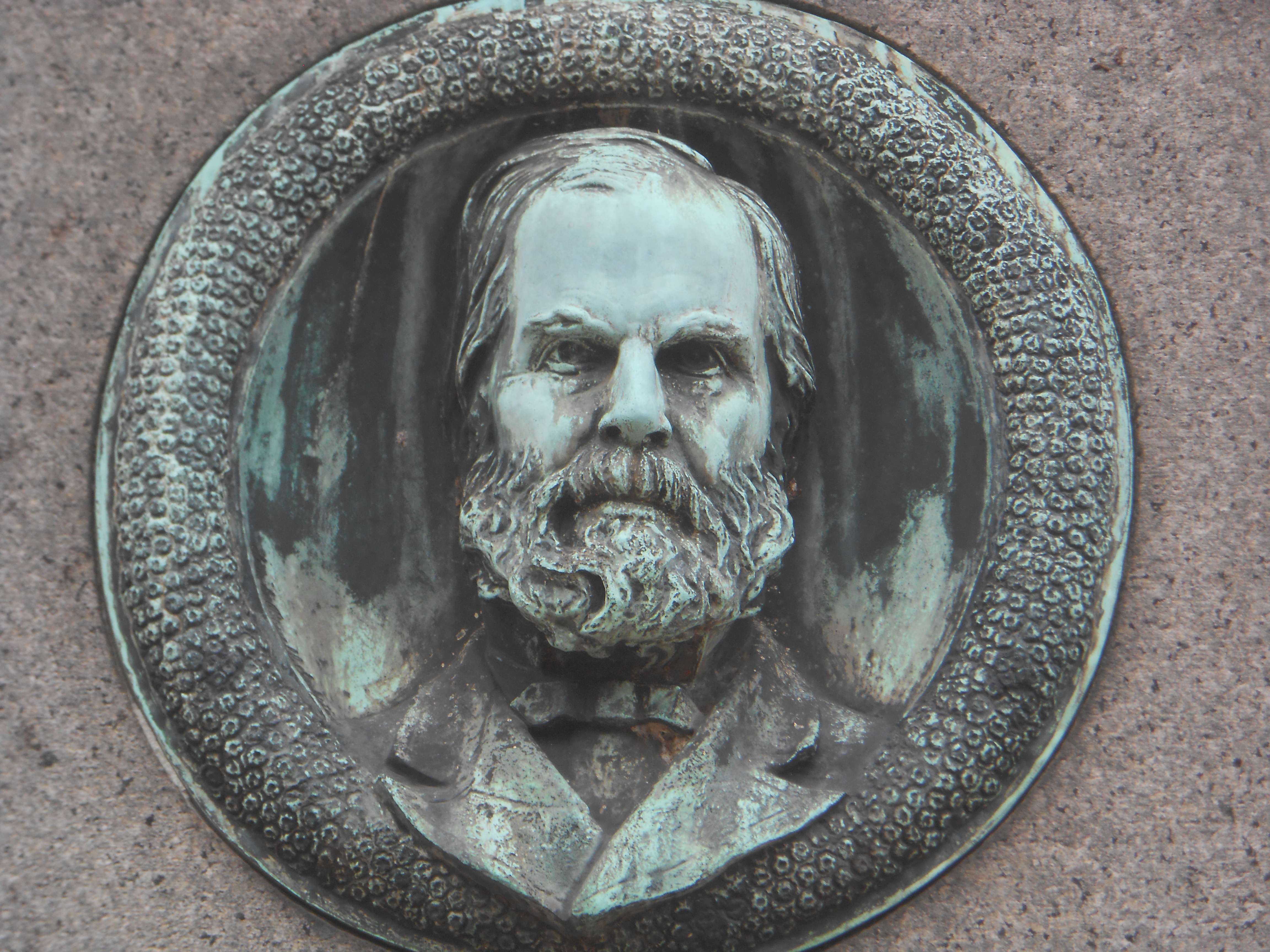 The Spencer family also must have been amongst the movers and shakers of 19th-century Waterbury.  Witness the tall monument with the carefully carved likeness in relief.  This guy must have worked awfully hard for his money and position because he does look rather cranky, don’t you think?