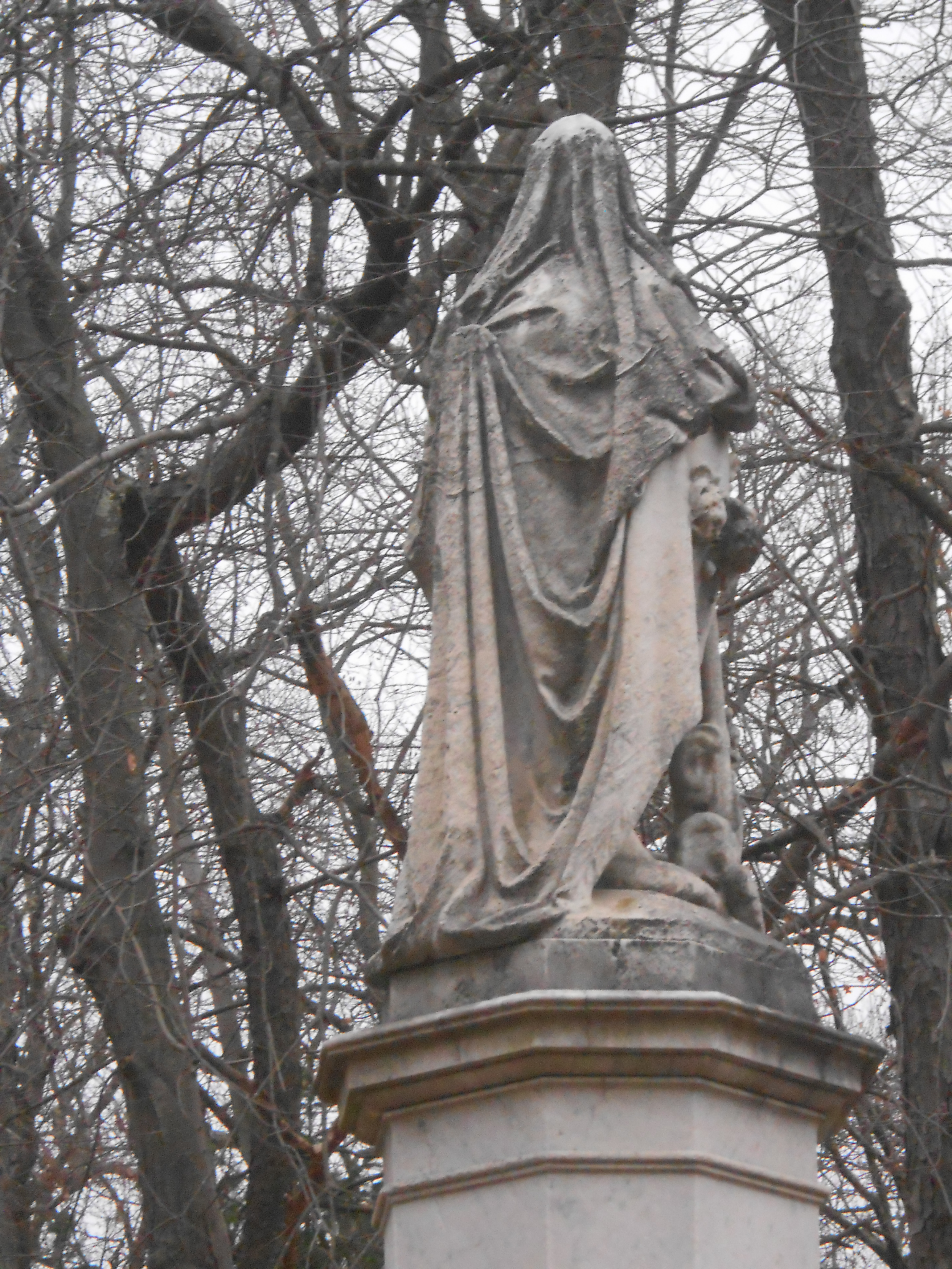 Of course the statuary revealed the entrancing work of inestimable craftsmen.  There were so many haunting statues of women.  For example, regard the deep feeling of this woman who guards the entrance to one family’s mausoleum.  Is this an actual likeness to a wife or mother of the N.J. Welton family who preserved that family’s secure home?  Was the truth of that family portrayed in this woman’s intense devotion, or are any conflicts whitewashed here for posterity?