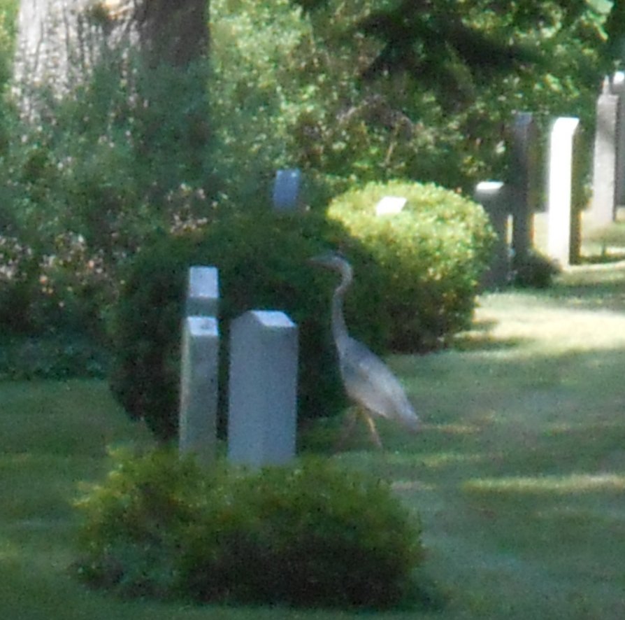 2mtauburn7We really had a surprise when we saw and were able to follow a Great Blue Heron around the cemetery. We expected to see him wading in one of the ponds. That’s how we usually see them, but not this guy.2mtauburn5 He just took himself on the most casual of strolls, looking around, chilling out. maybe he was looking for a friend?