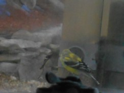 I mustn’t forget to mention the multitude of Gold Finches. They do tend to stay around all year, though the number of their appearances dwindles in the winter. However, in March and April I would see more and more of them. I loved watching their dull winter coats turn gleaming yellow as the spring progressed. I like that they are feisty and don’t let the bigger birds bully them off the feeder.
