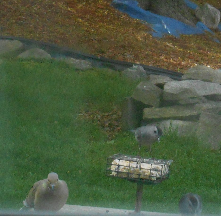 Another of my favorites is the Catbird. I first spotted one this year on May 5th, but this day I was lucky enough to catch two together, feeding with a Mourning Dove. I love how the Catbirds have such a plethora of different calls, many so musical. For me, it’s fun that one of their calls, though not of the musical variety, is “Sharon!” They’re always looking for me. It’s nice to be wanted!