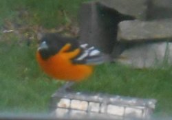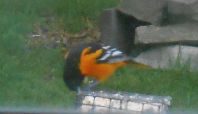 In the same week, (5/9) Yang called me to look at the backyard feeder, and what did I see but a Baltimore Oriole! He also appeared for a snack on the suet feeder by the side of our house, as well. I haven’t seen him in a few days, but my neighbors usually report on him. Of course for all these birds, I may not be seeing the same one every time, but it is fun to note that they seem to show up at almost the exact same date every year. It’s lovely to see old friends!