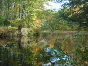 Looking in the opposite direction on the the river, you could see the lovely colors mutedly reflected in the water. At one moment we heard a splash across the water, an otter-sized splash, but alack, we never caught sight of the slick furry critter.