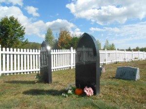 This month has blue moons, two in one month.  The first day of October this year was the first full moon of the month.  So, we celebrated  with a trip to New Hampshire that was a triple header for us.  First, we visited the grave of my favorite actor, Claude Rains, in the Red Hill Cemetery.  It’s a small, peaceful place, with lots of firefighters R.I.P.ing there.  The graves of Mr. Rains and his wife Rosemary are beautiful polished black stone Gothic arches.  To pay tribute, we brought one of the pumpkins that we had grown ourselves this year.  I liked presenting a little gift that Yang and I had worked hard to cultivate together.  The foliage by the cemetery hadn’t quite turned yet, but there were still some pretty trees.  When we go a bit later in the season, you often see some magnificent colors.  Check this link to a blog with pictures of the foliage in a past visit.