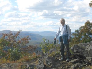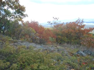 Hiking up the mountain isn’t too bad a hike at all.  There are several trails to get to the Tower.  The most popular one is a little steep at first, through autumn woods, but there are benches along the way if you’re out of shape and need a rest.  We were in good enough shape not to!  Then, you come out of the woods and onto a ridge overlooking the valley below.  The view along this ridge is wonderful, and you might even see a hawk as we did! Some great overlooks.