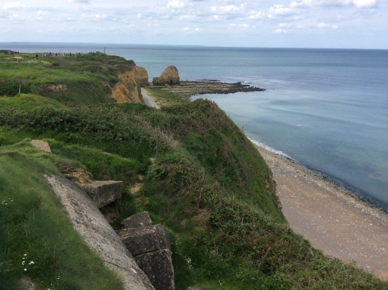 Our first glimpse of the D-Day beach after a bus trip from Caen.