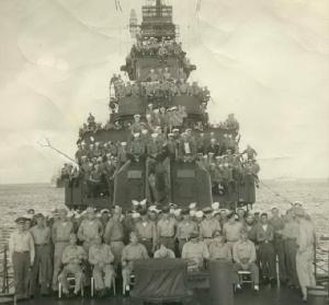I found this picture online of the Hudson’s crew in 1945, and I think I can pick out my Dad.  He’s the one with the beard and the cocky expression on the right, in the second row, behind the last seated guy on the right with his cap on. I know that expression well! You better click on the picture and enlarge!  My Dad had a wonderful album from his Navy days, but either my brother or one of my nephews has it now.  I really want to get my hands on it so that I can scan the pictures!  If you click here, you can see the crew list with my Dad’s name!  This is also from the Hudson Homepage.  For more history of the Hudson, you can also click here.