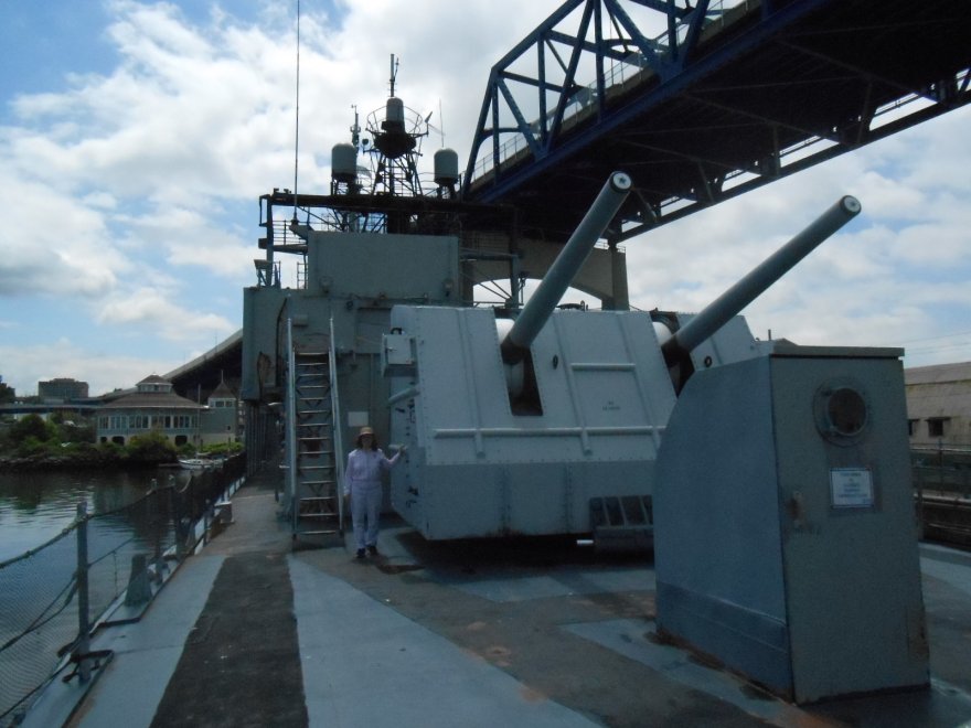I was especially interested in USS Jospeh P. Kennedy,  because, as it was a destroyer built during WWII, I thought it might give me a good idea of the type of vessel on which my Dad served.  The Kennedy wouldn’t be an exact match, as a Gearing-class destroyer, where the Hudson was a Fletcher-class.  The Gearing class is somewhat bigger, and this ship was in its 1970s update state; however, I thought I might still get something of an idea.  I can’t get over how you can pack so many people in this space, though it is a big ship.  When I was in the rooms where the men slept, I pitied the 60 or so guys my Dad must have tortured with his snoring.  They must have thought they were under attack!  I was also struck with how athletic you have to be to get around and stay on your feet with the steep climbs and the narrow corridors – and I didn’t have to contend with roaring seas or battle conditions!  I was stiff for days afterwards!  Still, the space was luxurious compared to what we saw on the submarine Lionfish – more about that later.